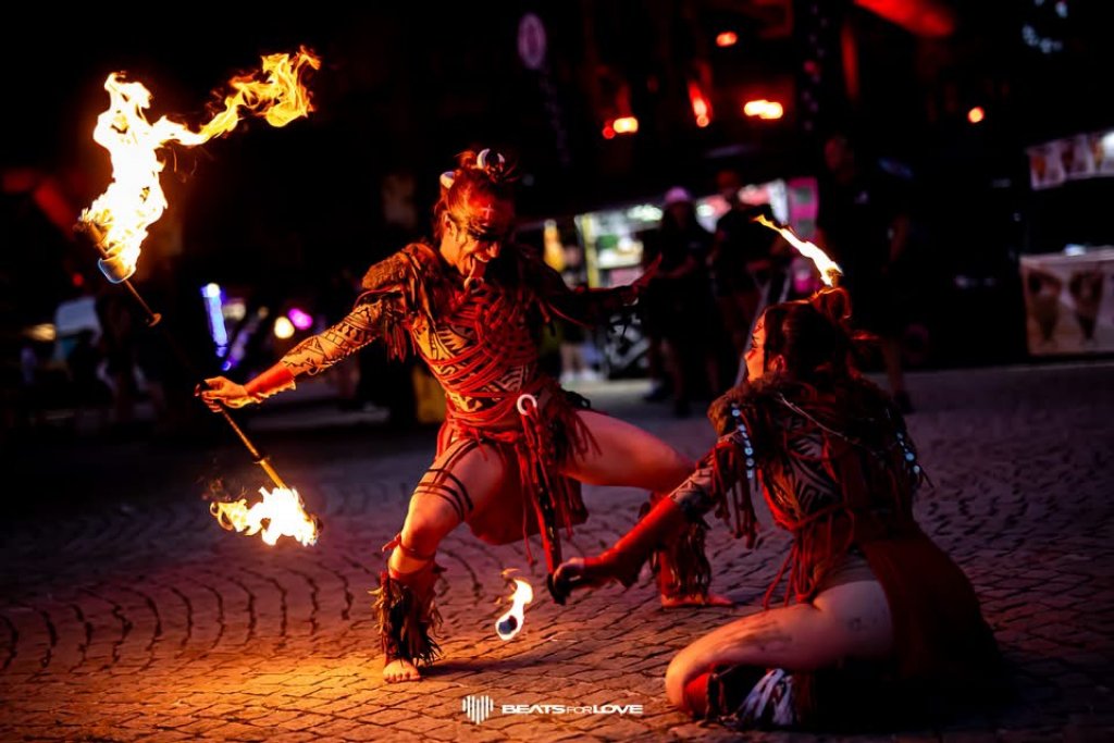 - Team size: 5 fire artists, 2 light artists, 2 flower ladies, 1 show manager, 1 technician