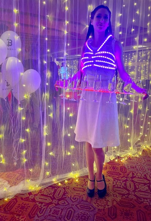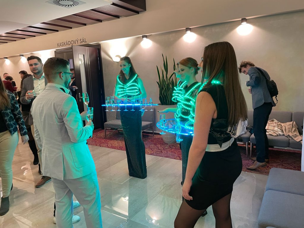 We supplied LED hostesses in black and white dresses for Benefit and their incredible party, attended even by the Slovakian rapper Rytmus. In addition to handing out welcome drinks from the illuminated tables, they were also there to light up the atmosphere and entertain the guests.