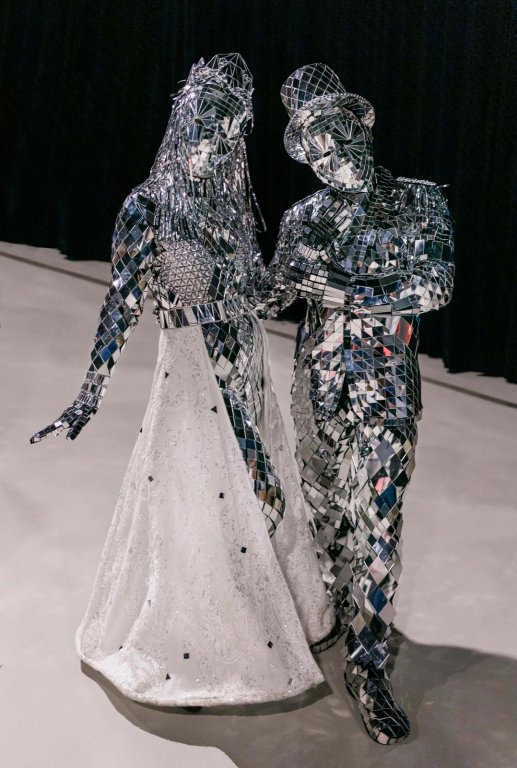 The playful Mirror Couple entertained guests throughout the evening by taking photos with the visitors and dancing with them.