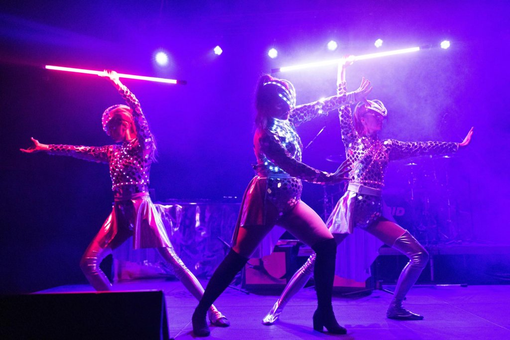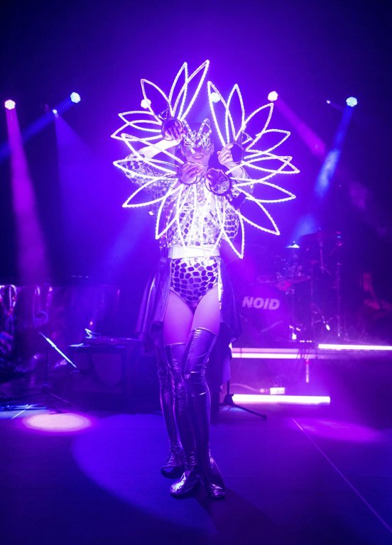 The event's highlight was the light show. For this performance, we decorated the performers' costumes with mirrors. The entire show was enhanced with LED programmable costume elements and laser effects.
