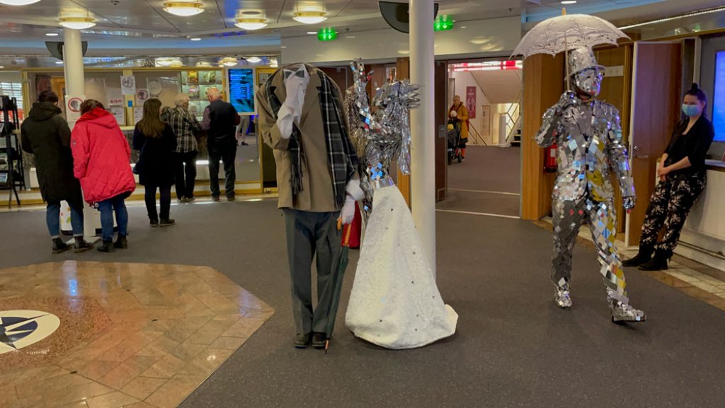 We also set up walking acts to entertain guests during the evening. A Mirror couple and a Headless couple walked around the ship three times a day and entertained the visitors with professional animation.