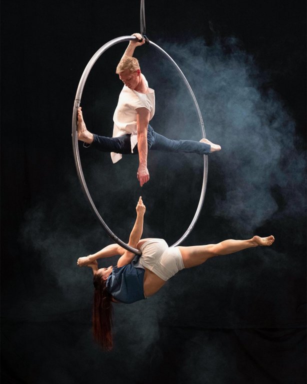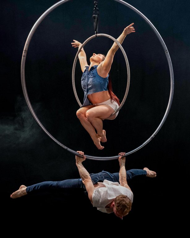 A unique combination of two aerial hoops with two acrobats that will take your breath away. Flying Cyrwheel is a performance suitable for events where you want to amaze the audience with a world-class artistic extravaganza.