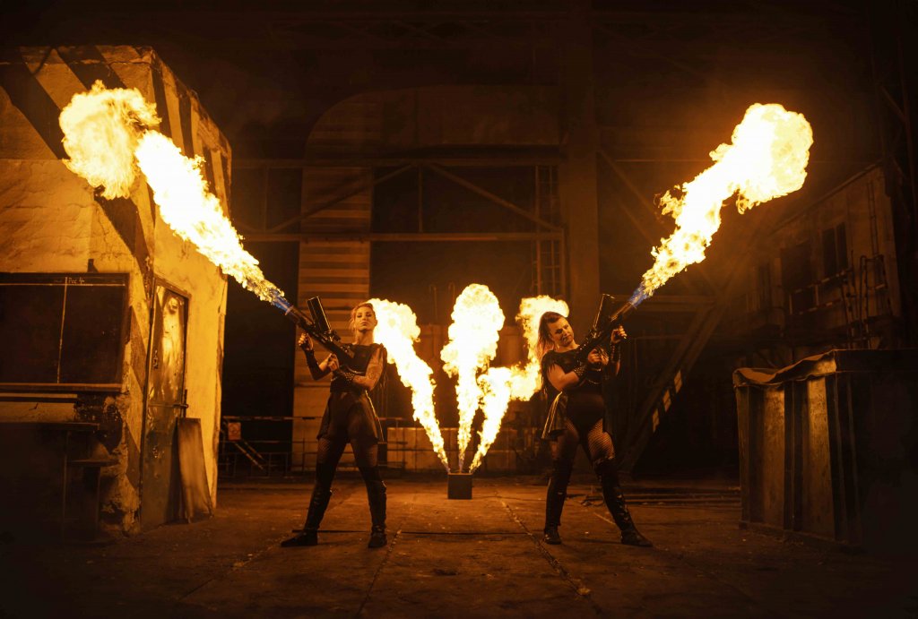 They stand out best as part of one of our fire shows. We also offer flamethrowers as part of our fire walking acts, where our performers can walk right amongst the visitors, take photos with them and get them properly fired up before entering the event.