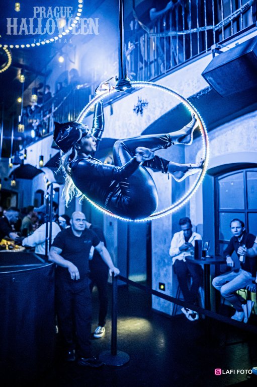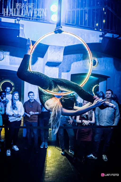 If you are looking for an attractive program to complement the stage of your dance club or an unusual program for the foyer at your event, the Aerial Hoop Solo is the right choice. This performance is often combined with one of the light shows to create bespoke projects.