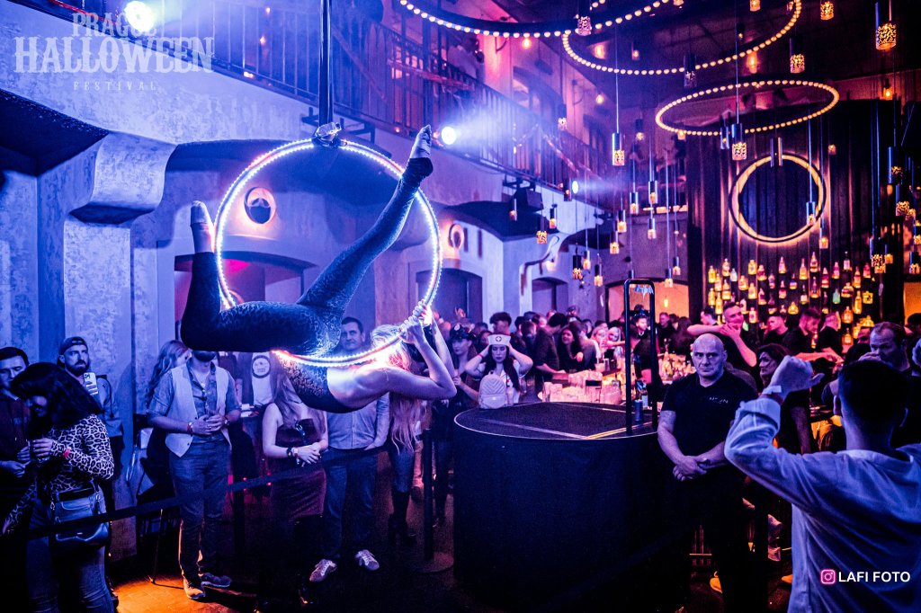 An extraordinary experience that will get the attention of your visitors, whether it is a main show or a complementary show with a DJ on stage. We enhanced the light aerial hoop with LED technology to precisely synchronize the effects with the music.